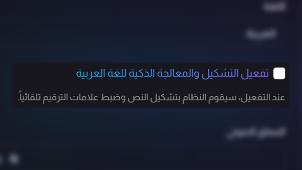 ننصح بتفعيل ميزة "التشكيل الذكي" التي تقوم بضبط الحركات الإعرابية تلقائياً، كما يمكنك تشكيل الكلمات يدوياً لضمان أعلى دقة ممكنة في النطق.